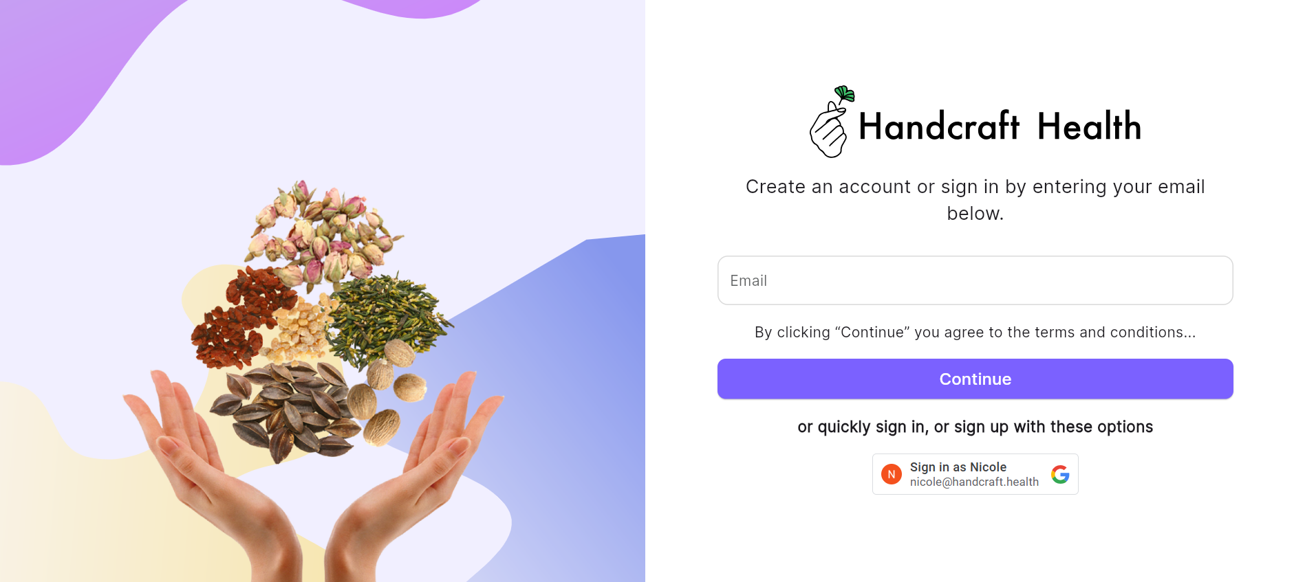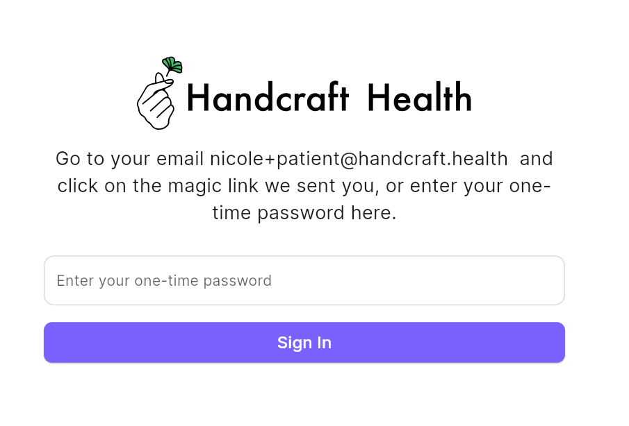 With this simple and secure login process, managing your health with Handcraft Health is easier than ever. If you have any trouble logging in, check your spam folder for the login email or reach out to support for assistance at support@handcraft.health.