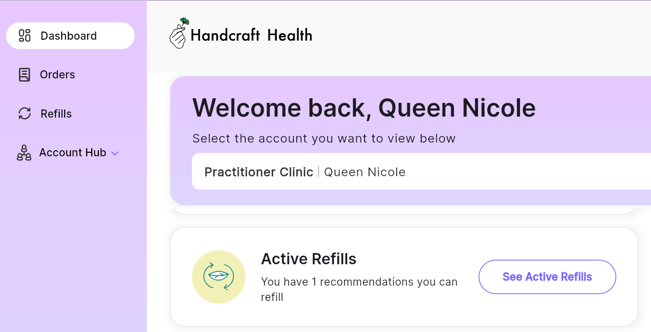Log into your Handcraft Health Patient Portal and go to your dashboard. There are two ways to view your refills: