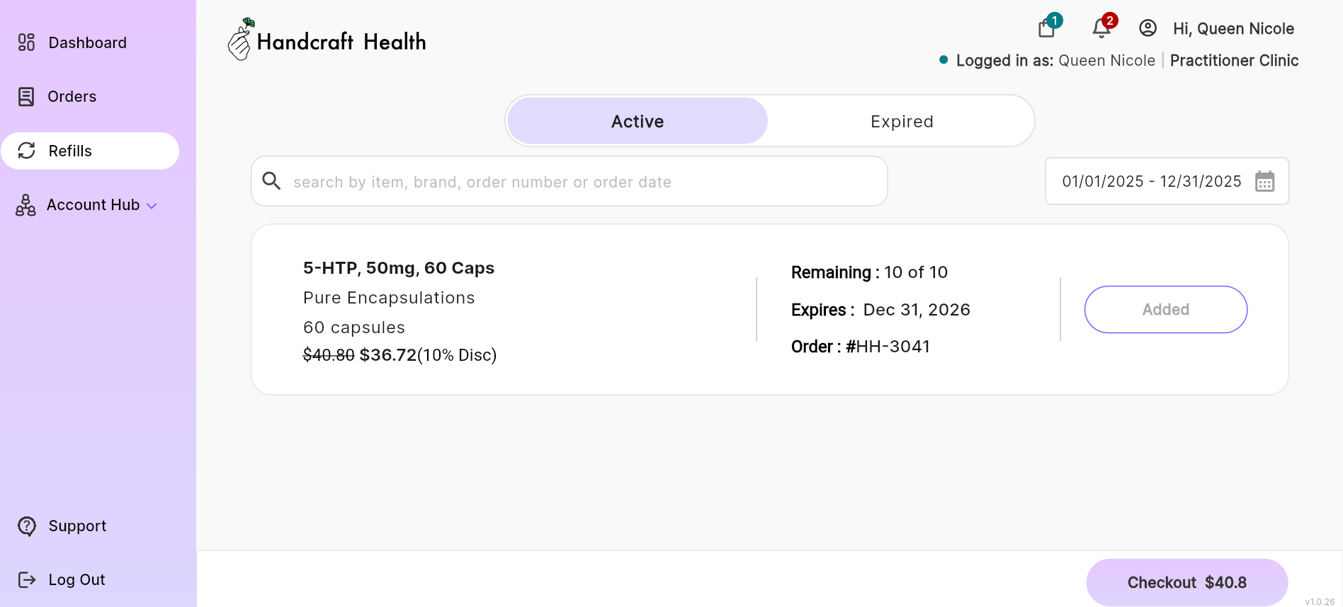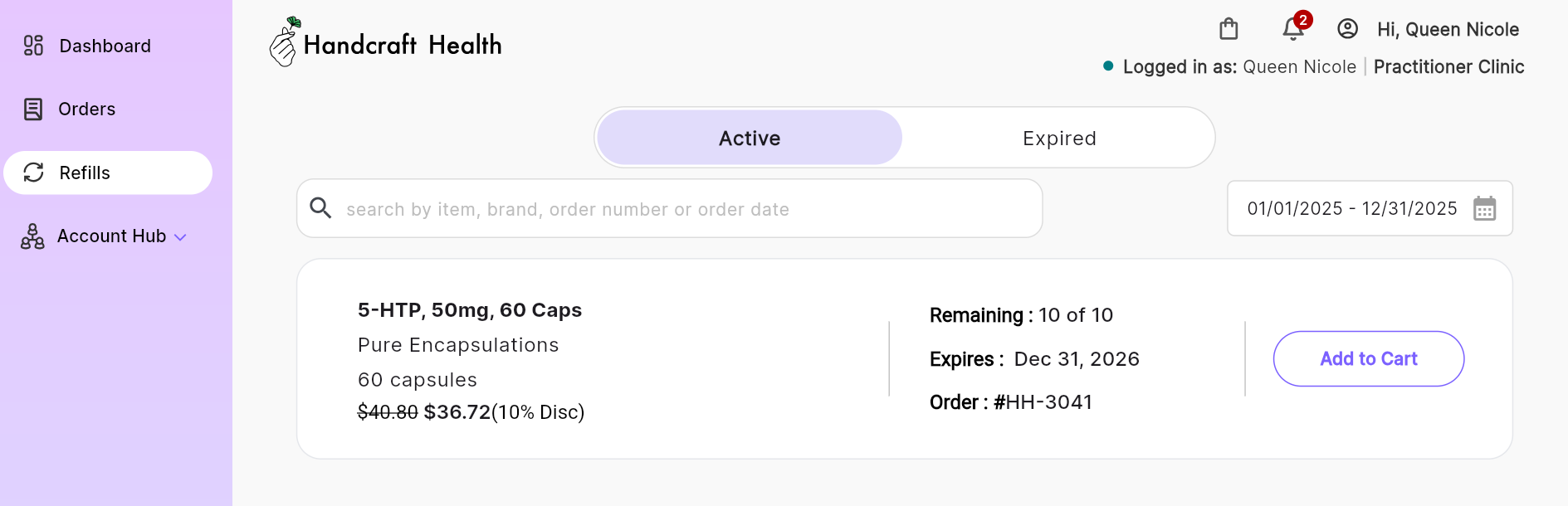 Refilling your products in the Handcraft Health Patient Portal is simple and convenient. Follow these steps to check your refills and place an order.