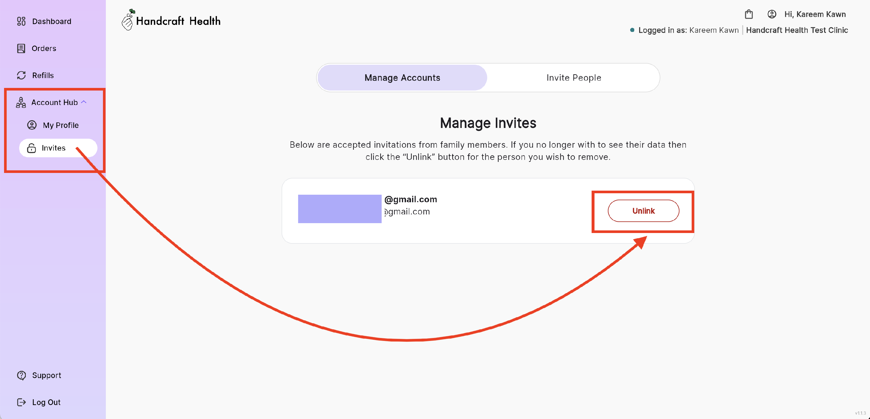 Linking family, friends, and partners to your Handcraft Health account is a great way to share health information with those you trust and give them access to the products you love. They will be able to view, but not edit, your personal information, keep in mind they can edit shipping details for the products they are paying for on your behalf. Learn below how to invite and/or remove them from your account.